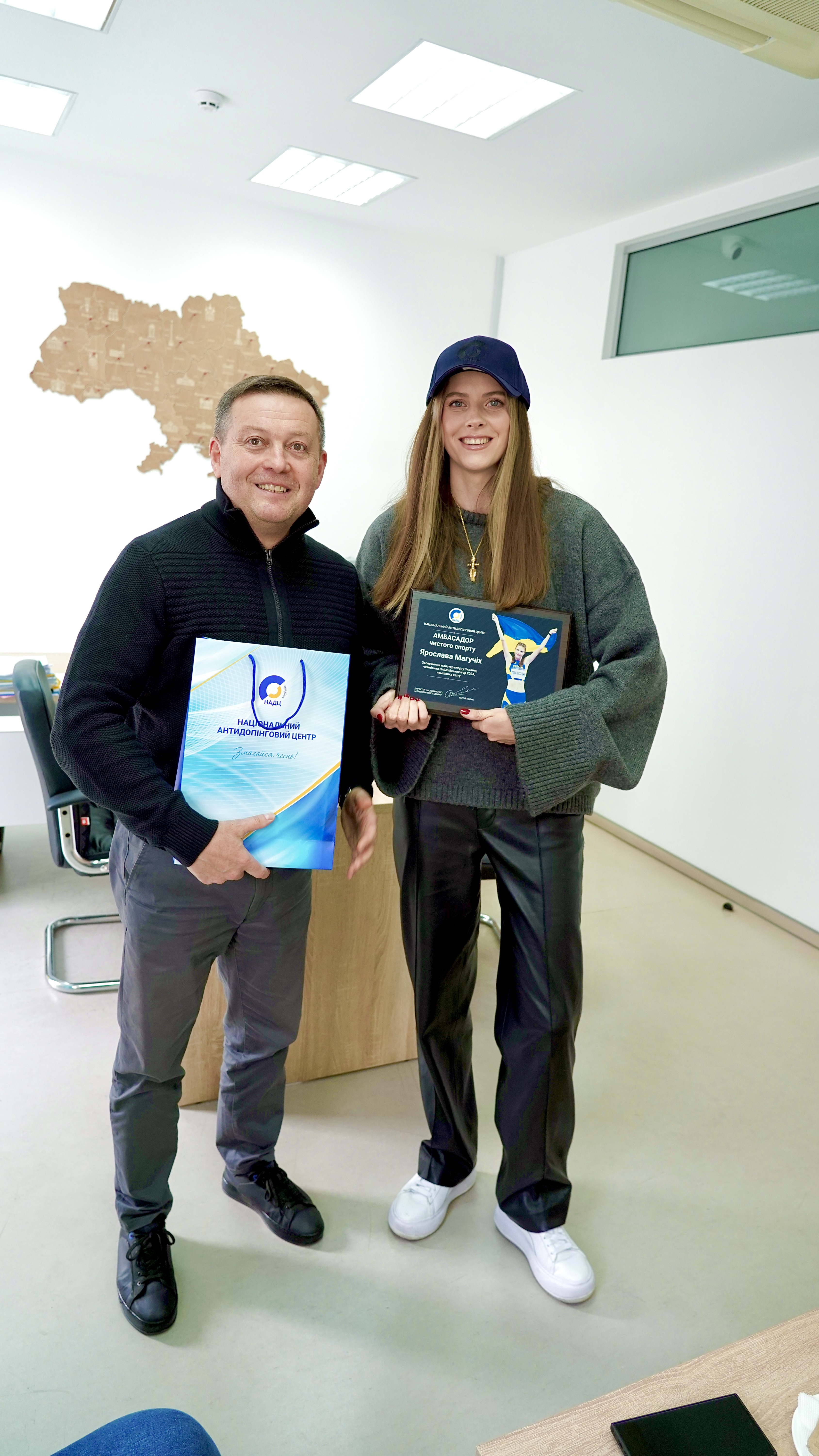 “We are truly delighted that Yaroslava Mahuchikh — Olympic and World Champion, a bright leader in global athletics — is an Ambassador for Clean Sport of the National Anti-Doping Center,” said Serhii Popyk, Director of NADC, as he welcomed the renowned Ukrainian athlete.