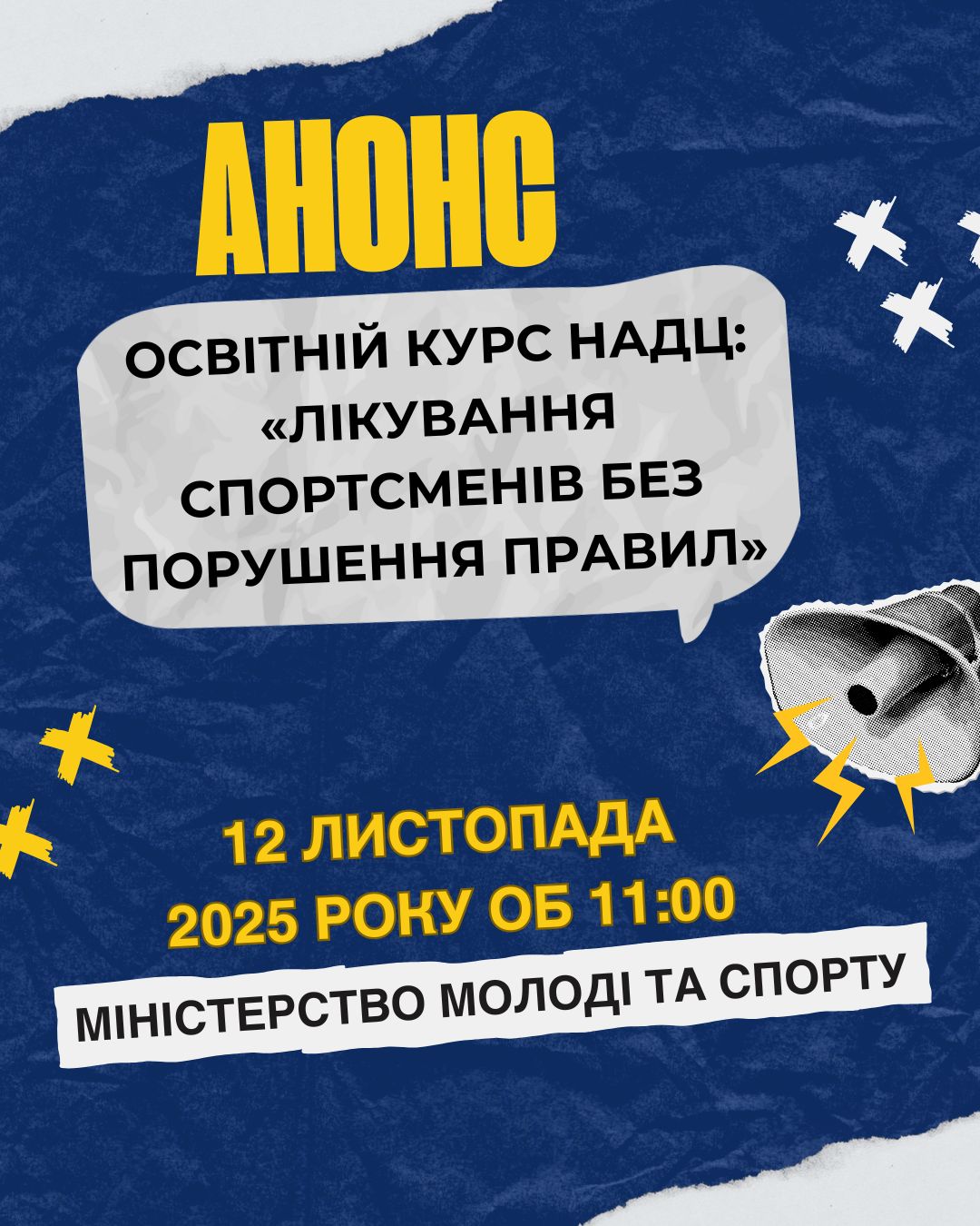 Національний антидопінговий центр за підтримки Міністерства молоді та спорту України проведе освітній антидопінговий курс «Лікування спортсменів без порушення правил: все, що потрібно знати про дозволи на терапевтичне використання»